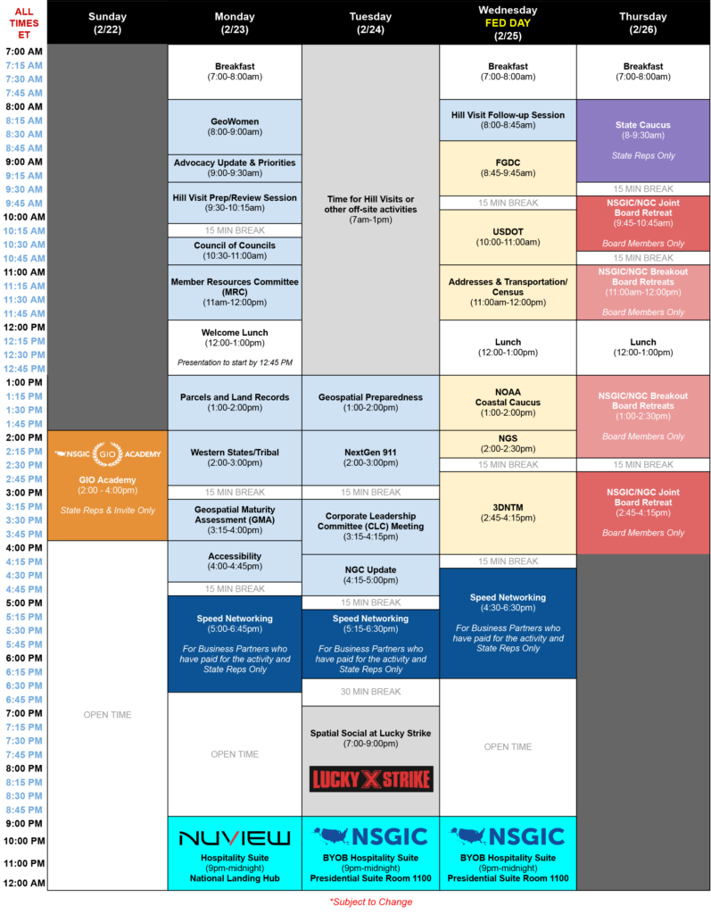 The NSGIC Board of Directors, Conference Committee, and staff are looking forward to heading back to Arlington, VA for the 2026 NSGIC Midyear Meeting to be held February 22-26.